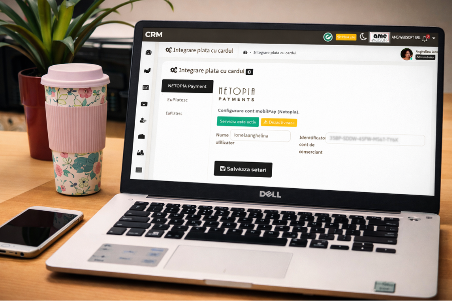 Un exemplu relevant este CRM AMC, care oferă funcționalități avansate pentru gestionarea relației cu clienții, dar și pentru automatizarea procesului de plată. Prin integrarea cu procesatori precum NETOPIA, EuPlătesc sau STRIPE, platforma permite efectuarea plăților online direct din factură, într-un mod rapid și securizat.