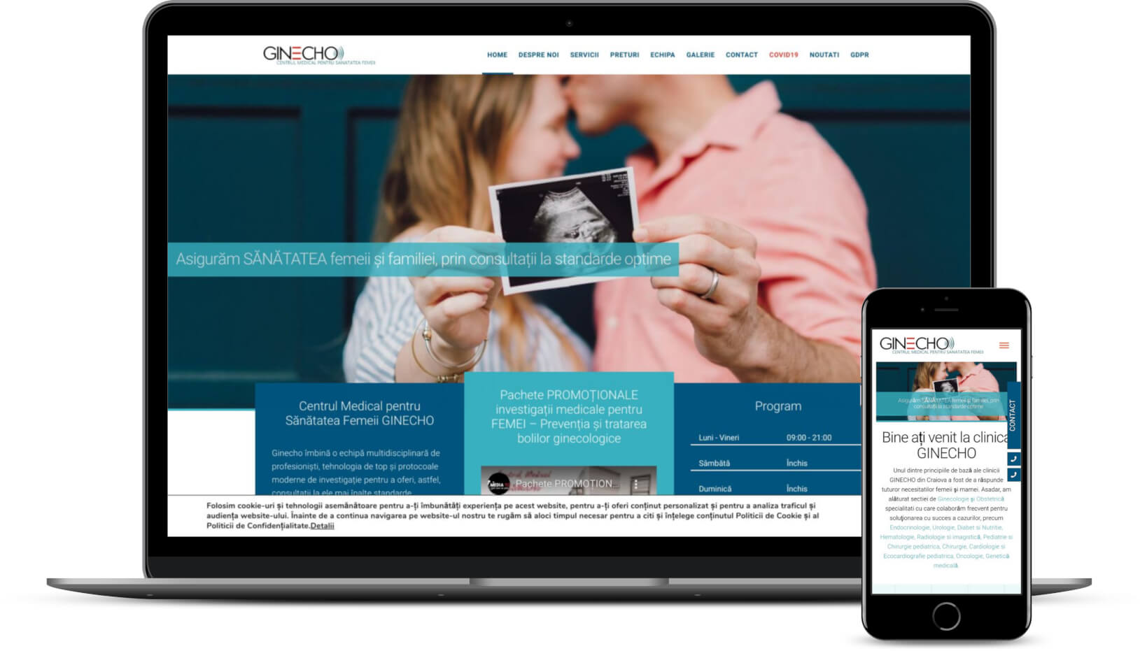 Proiectul GINECHO a fost creat în scopul de a răspunde tuturor necesităților femeii și mamei.  Clientul a solicitat realizarea unui website de prezentare informativ. Am pus accentul pe simplificarea accesului la informație și pe funcționalitate pentru a oferi vizitatorilor o experienţă de navigare cât mai uşoară.
